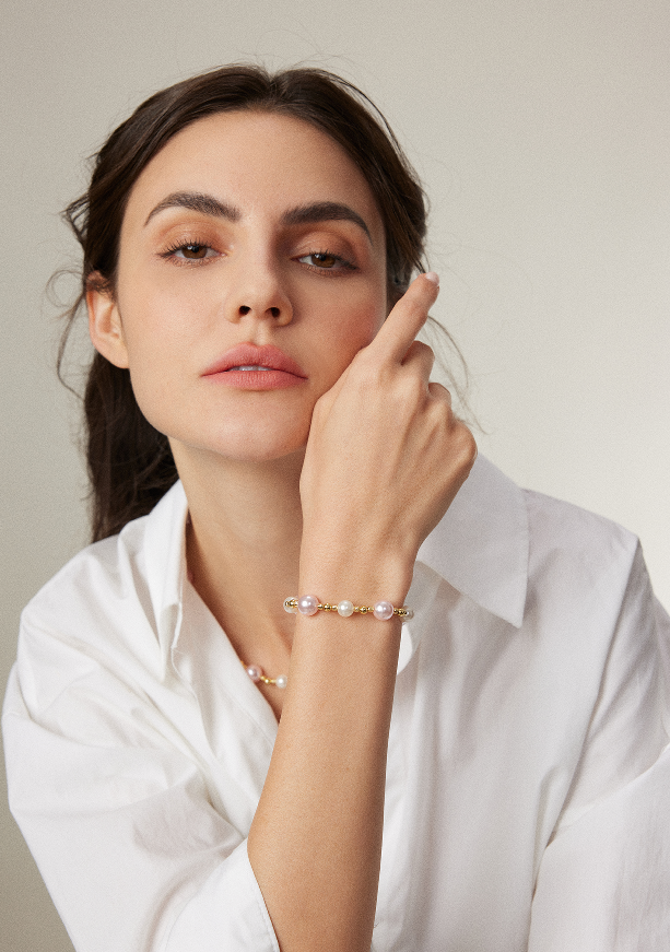 Gold bead simple chain, minimalist and versatile age-reducing bracelet.